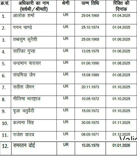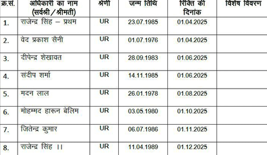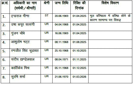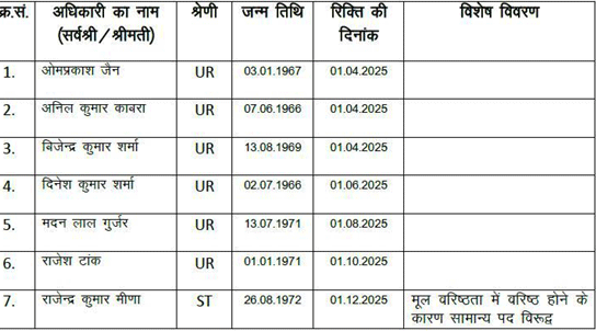 सहकारिता विभाग के संयुक्त शासन सचिव प्रहलाद राय नागा की ओर से जारी आदेशानुसार, निम्नलिखित अधिकारियों को वर्ष 2025-26 की रिक्तियों के प्रति वरिष्ठता सह योग्यता के आधार पर पदोन्नत किया गया है :-